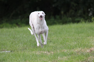 une adorable galga sauvée d'un tortionnaire fou , une pauvre misère habituée aux coups et tellement apeurée que je suis toujours aussi émue aujourd'hui de la voir heureuse confiante et épanouie, bravo Sandrine pour le formidable apprentissage.